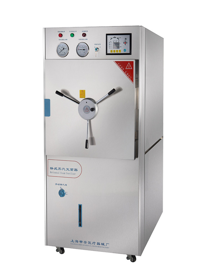 卧式蒸汽灭菌器产品属于压力容器受控产品,符合国家对压力容器设计与制作的相关规定,是我厂研制开发的新一代卧式压力蒸汽灭菌器,其结构先进可靠,具有快捷简便的操作方式和功能齐全的控制系统,在安全控制上;具有超压自泄、断水保护、超温自控的数套安全联锁的装置。本品操作系统采用先进的微机自动处理技术,灭菌运行过程