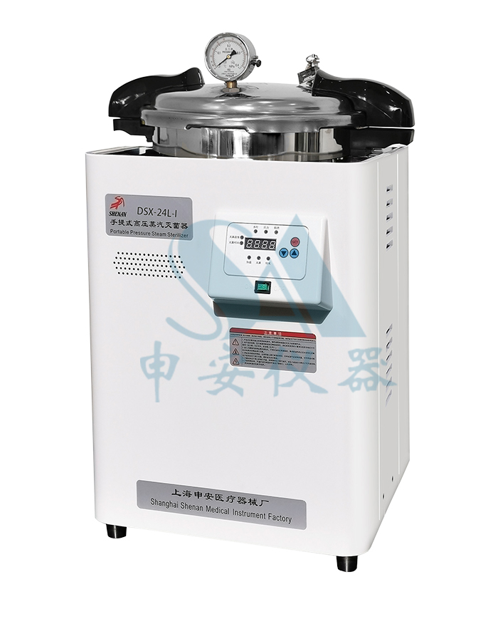 DSX-24L-I手提式高壓蒸汽滅菌器采用電加熱方式和自脹式密封。內(nèi)膽用SUS304全不銹鋼材質(zhì)制作,具有下排放冷空氣和下排水功能。